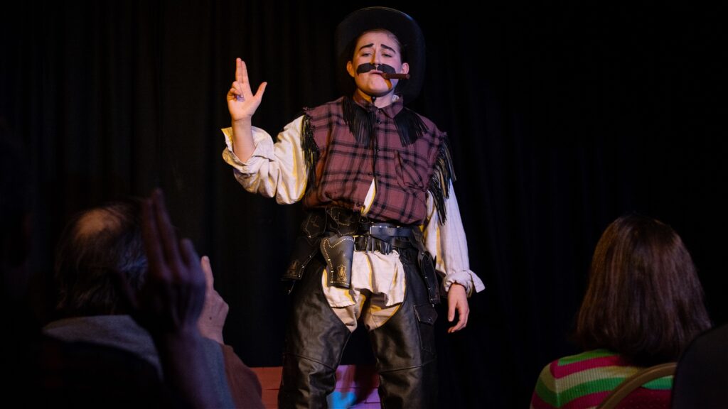 Coming to A Pinch of VAULT this week, Bangtail is a cowboy—specifically, the baddest man in Texas. But he’s missing something in his wild day-to-day: his purpose. So he sets off to find it, leaving the Wild West for a day job in middle America. Now, instead of wrangling cows, he wrangles the books at a mid-sized animal feed manufacturer in rural Minnesota. The show is performed by Lil Wenker, a clown from Minnesota and the co-founder of Chekhov’s Gum. Chekhov’s Gum makes rowdy and highly physical comedies that remind the audience of the power and stupidity of live theatre.
