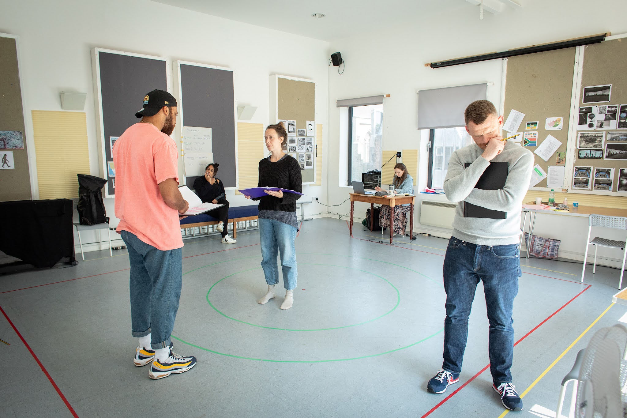 | Richard Sutton alongside Shaq Taylor, Diane Page, Scarlett Brookes and Charli Unwin in rehearsals for STATEMENTS AFTER AN ARREST UNDER THE IMMORALITY ACT. Photo by Helen Maybanks |