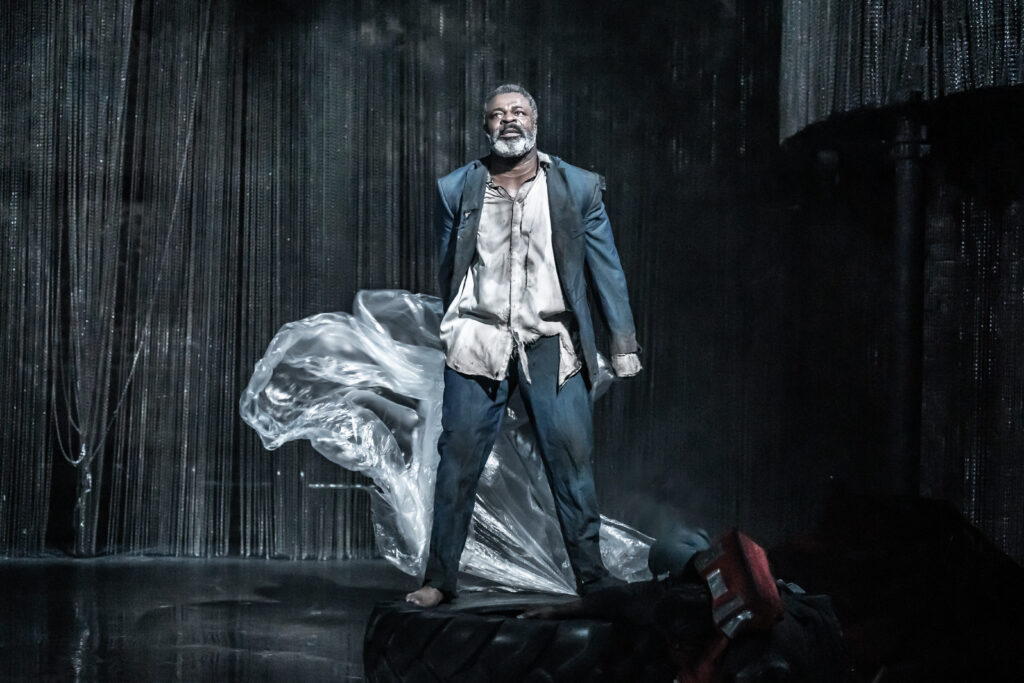So too does Sapani’s Lear. At 53, Sapani is a young Lear, and this is very much reflected in the intense physicality he brings to the role. With a voice is rich and booming voice, he is undoubtedly a king but this vicious tyrant could burst in anger at any moment, such is the rage that burns inside him. He is a man whose bow is permanently bent and drawn, ready to unleash his wrath – and you do not doubt the threats, at least not until his mind begins to betray his body. He maintains that fearsome power throughout his descent, and as Sapani’s Lear rages at the storm, with the Fool (Clarke Peters) huddling beneath him for safety, he is as ferocious as the tempest itself.