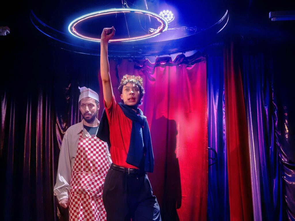 We were both cast in a production of Henry V in 2019, and we couldn’t stop talking about the play about our experiences of England and Shakepeare and how it was super complicated for us. It really grew organically, we shared a sense of humour and a perspective, and slowly slowly the show started to grow. In a way the show is a reaction to being in more traditional plays especially Shakespeare plays. There was so much we wanted to say that we couldn’t, now with writing this play we’ve been able to really process all of those experiences into something new. We did a work in progress at the Arcola in 2021 and we felt at the end of that showing that we had something interesting to share.