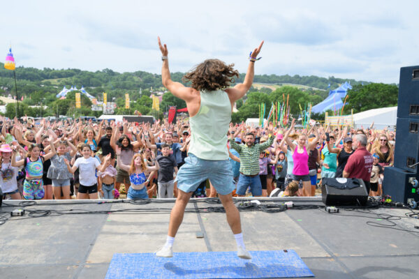 There’s a real mix of people at The Gateway on the Thursday morning of Glastonbury for a workout with Joe…